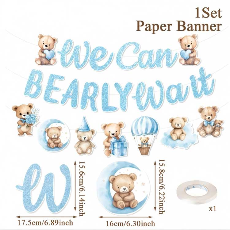 Туған күн баннері: 1 баннер/жинақ, ілулі безендіру үшін 2-3 ілулі арқанмен; «Туған күніңмен» немесе «Қош келдіңіз» деп басылған. Бала тақырыбына арналған мәтін