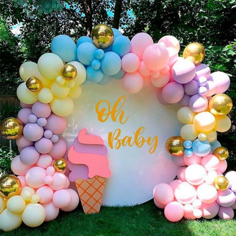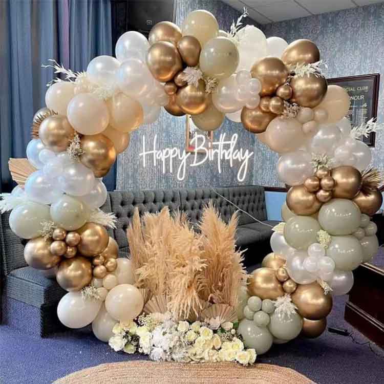 Шарлы арка жиынтығында 100-ден астам латекс шарлары, желім нүктелер, шарлар тізбектері, түйіршіктер, түйін машиналары және логотиптер бар. Біз доғаның таңғажайып түс эффектіне қол жеткізу үшін түрлі арналар ұсынамыз. Ол әртүрлі мерекелік іс-шараларды, мысалы, түлектер, үйлену тойлары, туған күндер, компанияның мерейтойлары, және үйде және ашық ауада қолдануға жарамды.