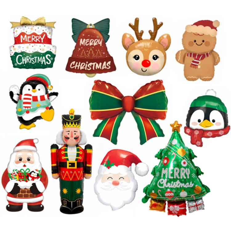 Ровинумдық фольга шарлары концерттерінде Рождестволық элементтерді қамтиды. Стамта класс, шырша, шыршалар, снежинкалар және қоңырау сияқты классикалық пішіндерде қол жетімді, бұл шарлар «көңілді Рождество» ұрандарымен безендірілген. Түстерде Рождестволық элементтерді қамтиды, ең алдымен, қызыл, жасыл, алтын, алтын, алтын, күміс, мерекелік атмосфера жасайды. Мини 30 см-ден алып 100 см-ге дейін, олар әр түрлі сәндік сценарийлер мен қажеттіліктерді қанағаттандырады.