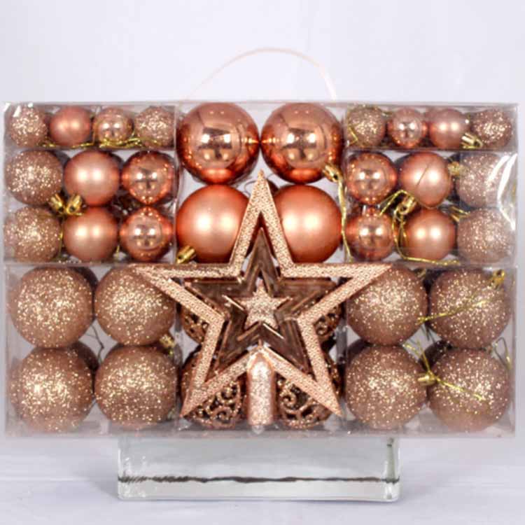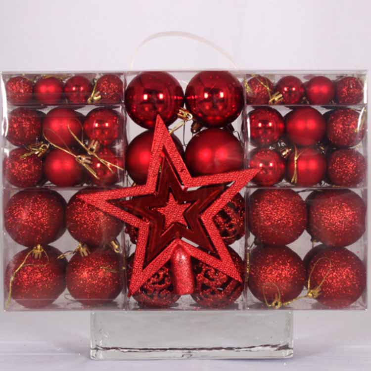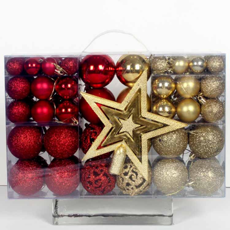 Рождестволық ағаш әшекейлері Ою-өрнек шарлары 101 түрлі сәндік аксессуарлардан тұрады. Онда әртүрлі өлшемдер мен түстердің сәндік шарлары бар. Оның пішіні әсер етпейді. Бұл бәрін әдемі және қарапайым етеді.