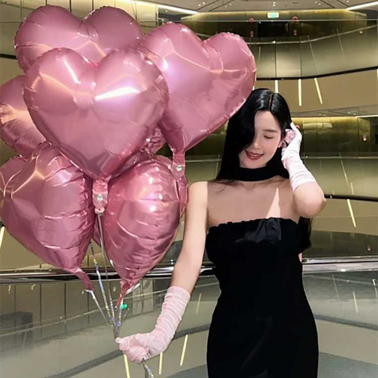 Жүрек пішінді алюминий фольга шарлары қалыңдатылған нейлон материалынан жасалған, бұл шарлар экологиялық таза сиялармен басып шығарылған жарқын дизайнмен мақтана алады. Бір қаптамада 50 шар бар.