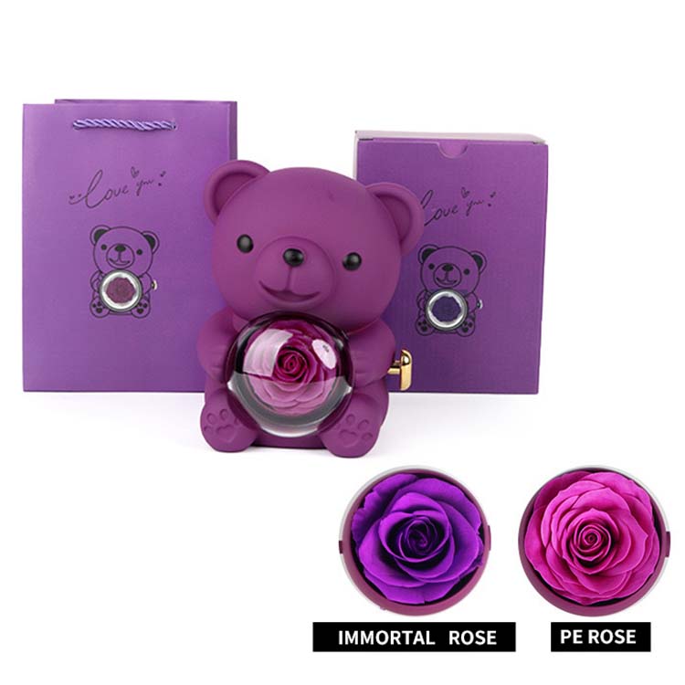 Акрилдің қақпағыҚұшақ аюы консервіленген раушанның зергерлік бұйымдары98% акрилді қақпақтың жеңіл таратылуы бар, анық көру, және сүйіспеншілікті ескермеу керек.