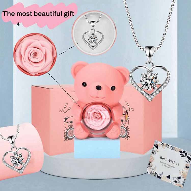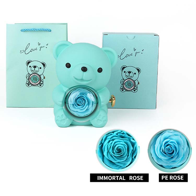 Құшақ аюы консервіленген раушанның зергерлік бұйымдарыЕрекше мәңгілік гүлдермен жұпталған және ескермеген, бұл адамдарды тоқтай алмады.
