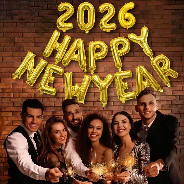 Бұл жаңа жылдық фольга шары жинағының өлшемі 16 дюйм (шамамен 40 см). Әрбір әуе шары жөнелту кезінде зақымдануды болдырмау үшін жеке оралып, оның жақсы күйде келуін қамтамасыз етеді. Сонымен қатар, біз қайта пайдалануға болатын дизайнды енгіздік. Әрбір жинақ қосымша ыңғайлы болу үшін таспа мен сабанмен бірге келеді.