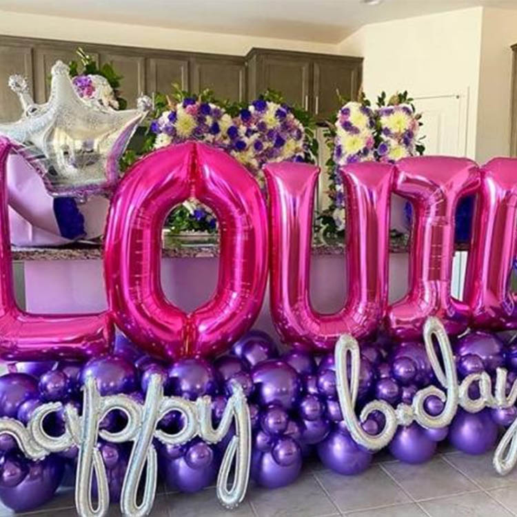 Туған күн кешінде,Қызғылт әріптер шарларыбақытты атмосфераны құрудың жалғыз таңдауы. Партия өтетін жердің кіреберісінде, туған күніне арналған қыздар мен қонақтарды ертегі әлеміне қадам басу сияқты сезінетін қызғылт шарлармен салуға болады. Интерьер ұйымдастырылған кезде, қызғылт шар туған күніне арналған қыздың атына жазылып, ерекше жағдайға ие болды.